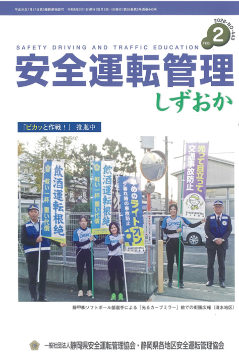 光るカーブミラーが、安全運転管理協会の機関誌「安全運転管理 しずおか」2月号の表紙に採用されました。