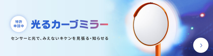 『光るカーブミラー』は、そんな事故を少しでも減らすために開発した、新しいセーフティーソリューションです。藤枝市、近隣企業様と連携して行った実証実験により、高い事故防止効果を証明しています。